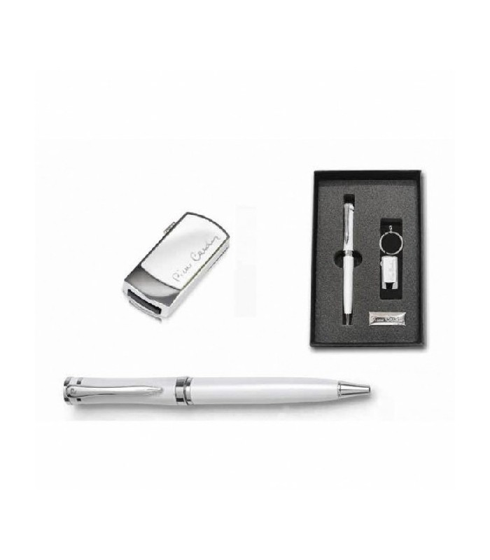 KIT BOLIGRAFO+ USB PLATEADO BLANCO...